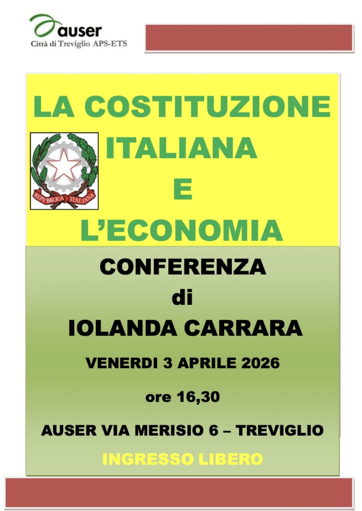Auser Treviglio “I Venerdì Culturali”: La Costituzione Italiana e l’economia